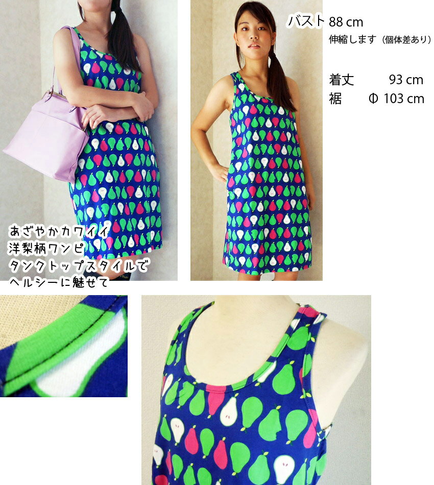 (画像のオーダー規約を必ず確認してね! ) レトロポップ70年代ガール風スタイル! 真っ青、ブルーカラーがベースにキュートな洋梨柄。